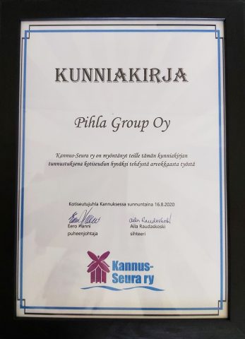 Pihla Group Oy on erittäin kiitollinen Kannus-Seuran tunnustuksesta. Eskolan tehtaan tarina Kannuksessa onkin alkanut jo vuonna 1939. Nykyään Eskolan ikkunatehtaalla valmistetaan rakennusteollisuuden ja alan ammattilaisten tarpeisiin ikkunoita ja ovia PihlaPRO-tuotemerkillä.